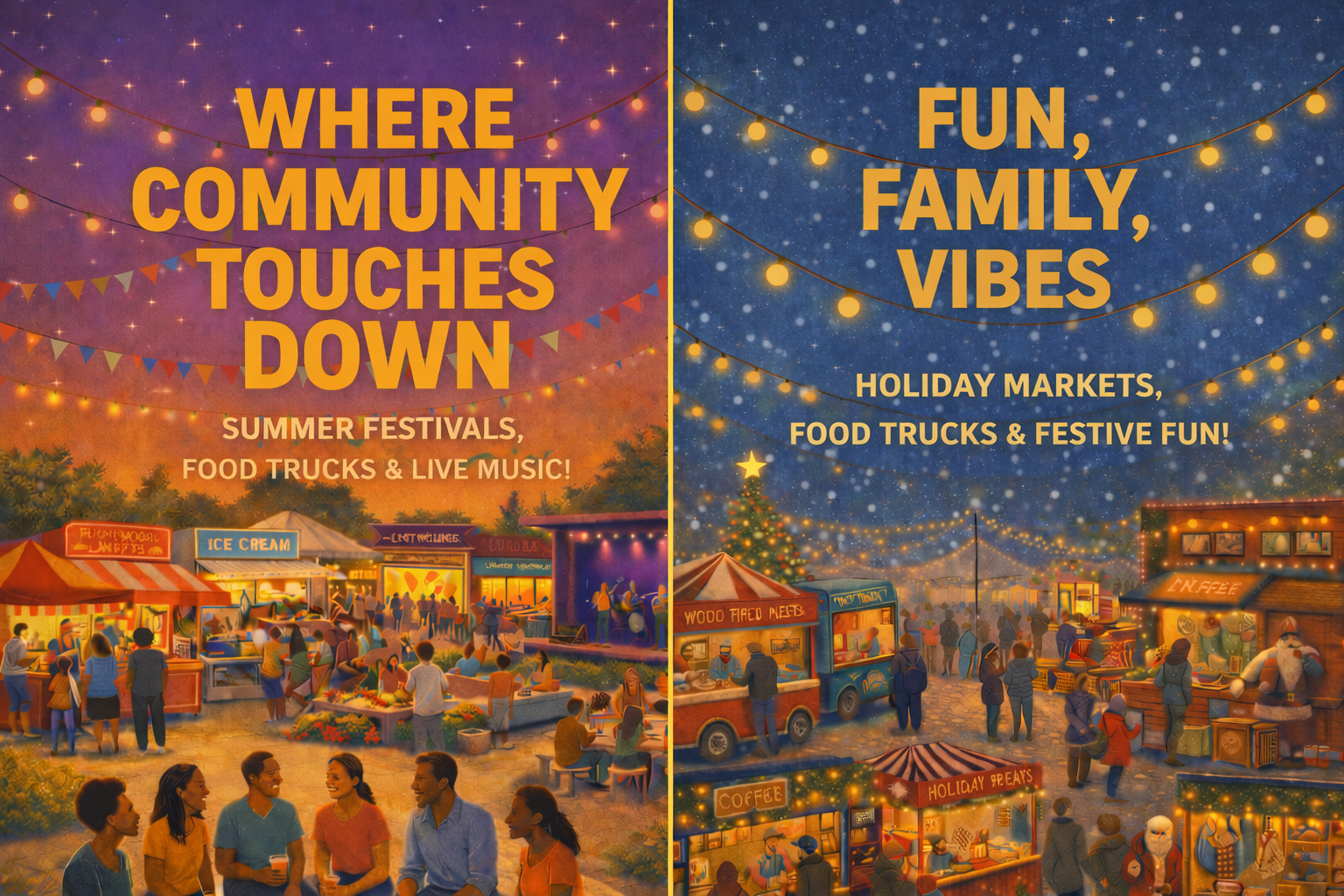 Seasonal vendors commit to a defined season of events (example: fall programming or winter events). Seasonal vendors may be invited to select premium weekends after a successful trial.